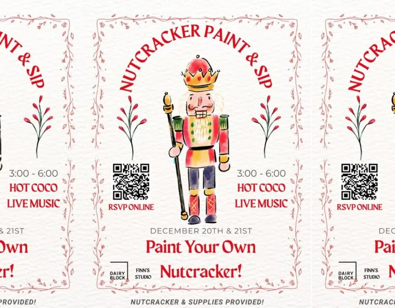 Paint your own wooden nutcracker, sip hot cocoa and enjoy live music! Join the nutcracker workshop at Finn's Studio. $35 (includes all materials). Tickets on sale now. Finn's Studio located...