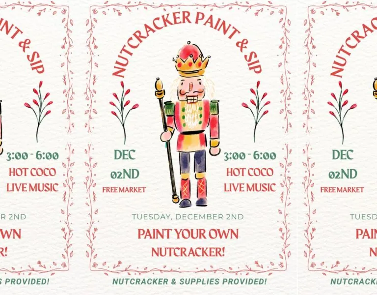 Paint your own wooden nutcracker, sip hot cocoa and enjoy live music! Join the nutcracker workshop at Finn's Studio. $35 (includes all materials). Tickets on sale now. Finn's Studio located...